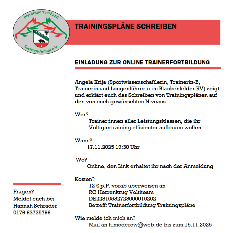 Einladung: Trainingspläne schreiben - Trainerfortbildung